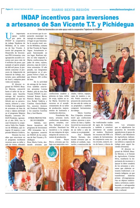 Página 12 - Viernes 5 de Enero de 2024 www.diariosextaregion.cl