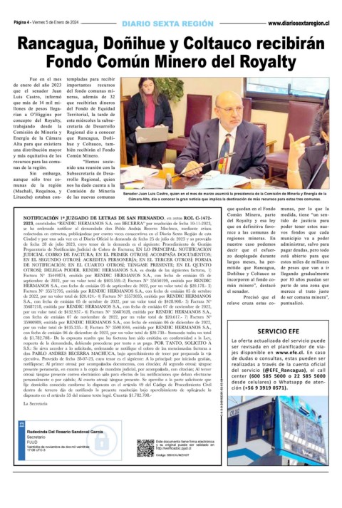 presente personer a, en cuanto a la copia de mandato judicial, por acompa ada, con citaci n; Al tercer del servicio (@EFE_Rancagua), el call
