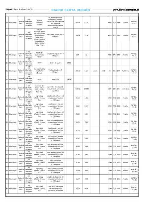 Página 6 - Martes 9 de Enero de 2024 Aqueveque transferida de un predio 40,49 702 2153 1910 2023 Peralillo NLPOAL-