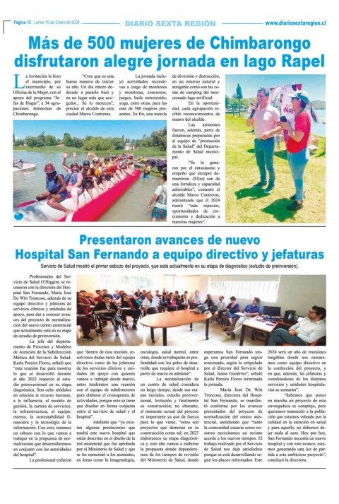 Página 12 - Lunes 15 de Enero de 2024 www.diariosextaregion.cl