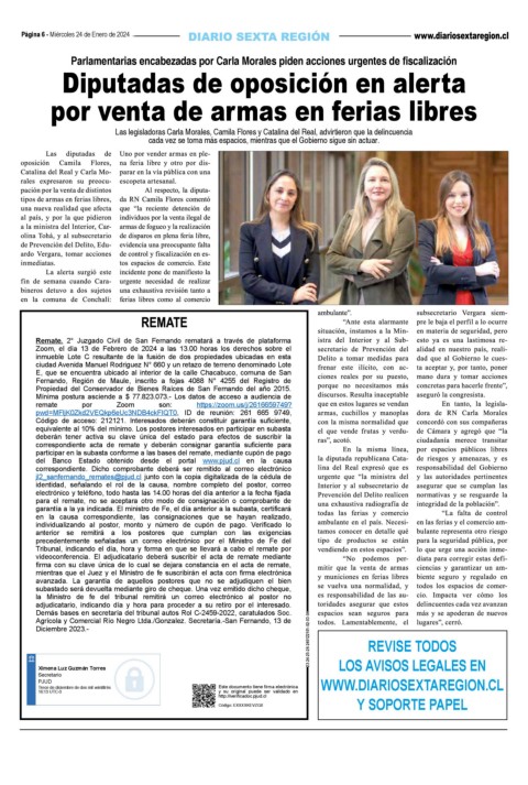 Trece de diciembre de dos mil veintitrés WWW.DIARIOSEXTAREGION.CL