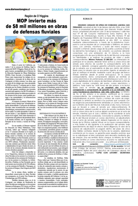 de $8 mil millones en obras FERNANDO, rematará el día 14 de febrero del año 2024, a las 12:00