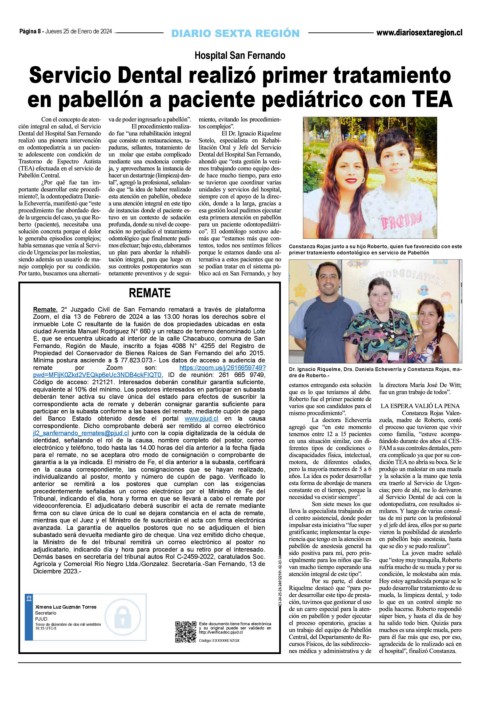 Mínima postura asciende a $ 77.823.073.- Los datos de acceso a audiencia de