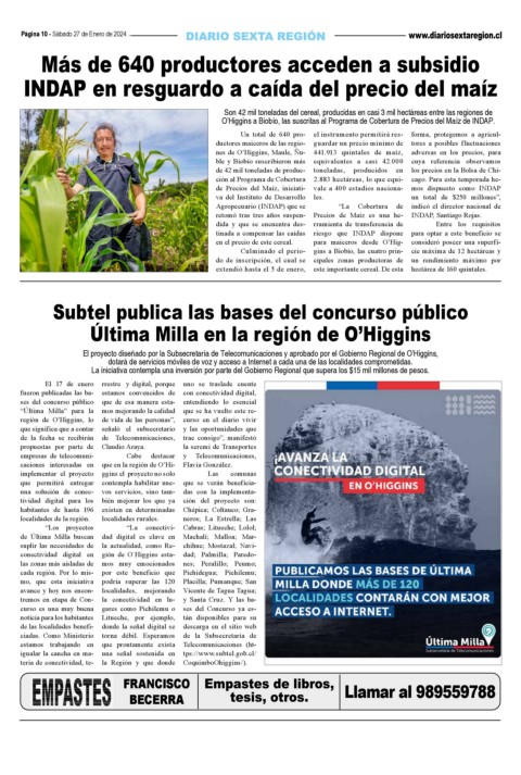 avance y hoy nos encon- localidades, mejorando Vicente de Tagua Tagua;