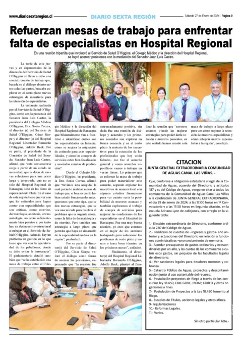 lud O’Higgins. Además, hay un de la especialidad médica en la trabajando para solucionar los terior y actuaciones del Directorio en relación a funcio-