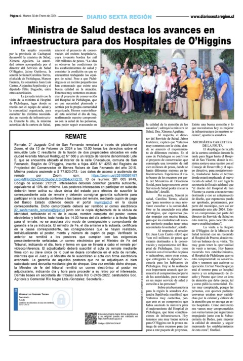 Mínima postura asciende a $ 77.823.073.- Los datos de acceso a audiencia de