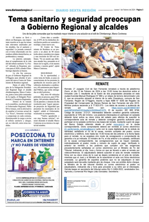 Mínima postura asciende a $ 77.823.073.- Los datos de acceso a audiencia de