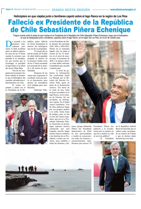 Página 12 - Miércoles 7 de Febrero de 2024                                                                      www.diariosextaregion.cl