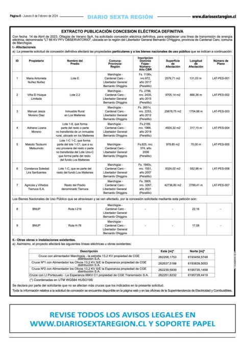 Página 8 - Jueves 8 de Febrero de 2024 MUESTRA 6-7-8-240205301-02-03 REVISE TODOS LOS AVISOS LEGALES EN WWW.DIARIOSEXTAREGION.CL Y SOPORTE PAPEL