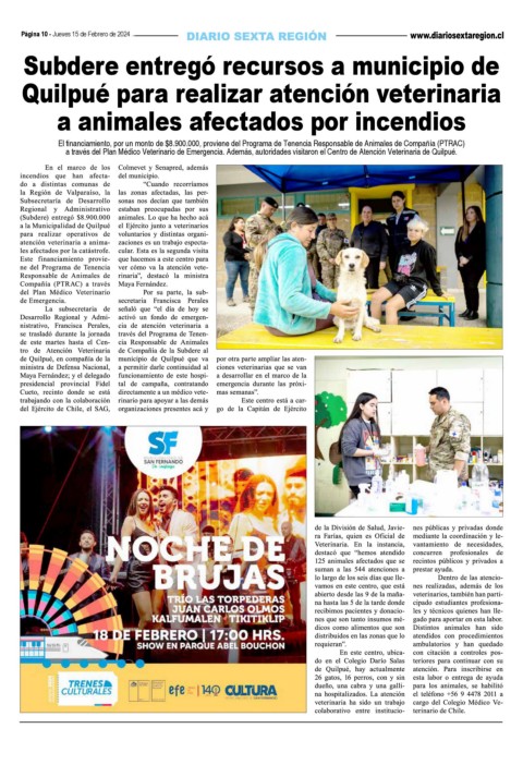 a través del Plan Médico Veterinario de Emergencia. Además, autoridades visitaron el Centro de Atención Veterinaria de Quilpué.