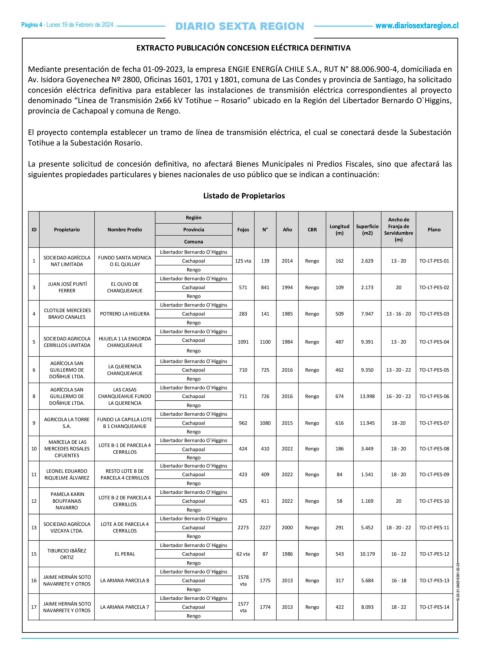 Página 4 - Lunes 19 de Febrero de 2024 DIARIO SEXTA REGION www.diariosextaregion.cl