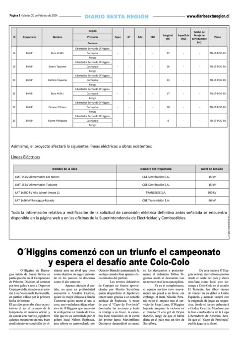 Toda la información relativa a rectificación de la solicitud de concesión eléctrica definitiva antes señalada se encuentra