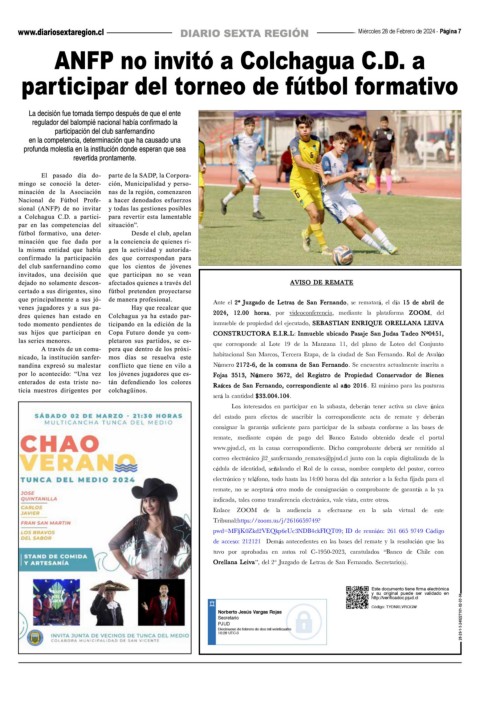 O Orellana Leiva , del 2 Juzgado de Letras de San Fernando. Secretario(s).