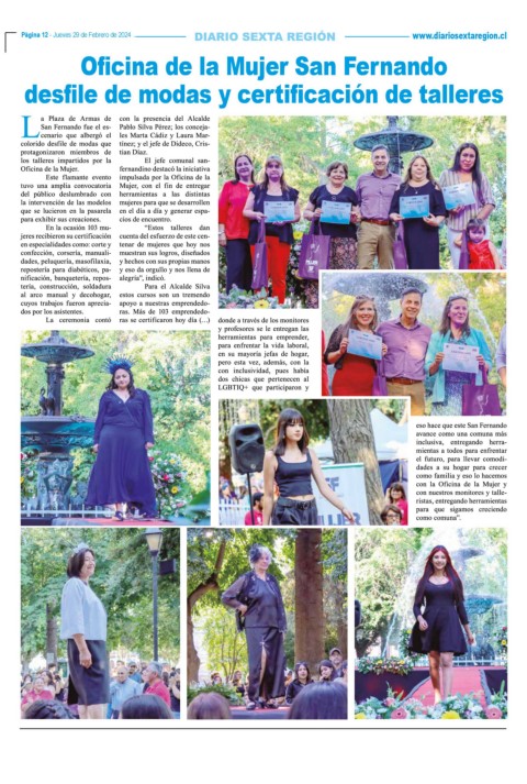 Página 12 - Jueves 29 de Febrero de 2024 www.diariosextaregion.cl Página 12 - Jueves 29 de Febrero de 2024 Oficina de la Mujer San Fernando desfile de modas y certificación de talleres