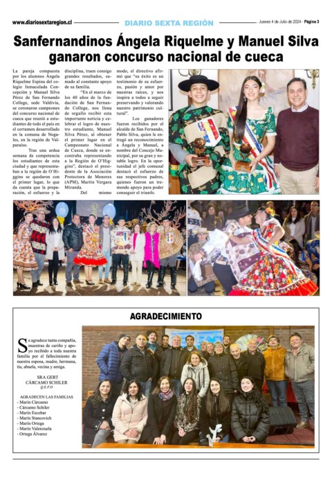 Jueves 4 de Julio de 2024 - Página 3 Sanfernandinos Ángela Riquelme y Manuel Silva ganaron concurso nacional de cueca AGRADECIMIENTO