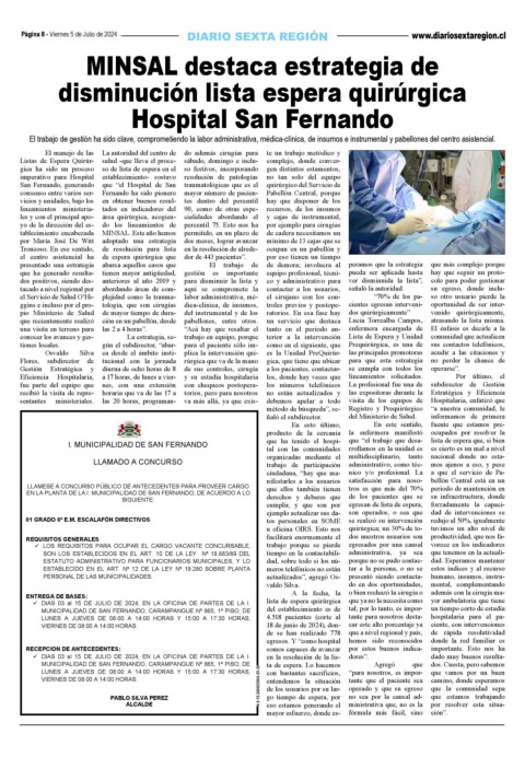 I. MUNICIPALIDAD DE SAN FERNANDO que ha tenido el hospi- que “el trabajo que desa- lista de espera que, si bien
