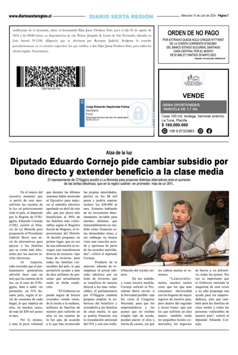 dependencias de este Primer Juzgado de Letras de San Fernando, diligencia que se efectuar por Receptor Miércoles 10 de Julio de 2024 - Página 7