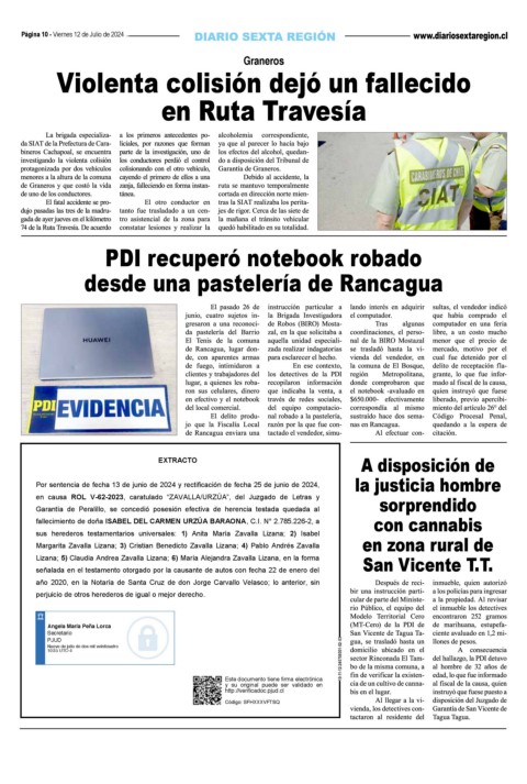 en causa ROL V-62-2023, caratulado “ZAVALLA/URZÚA”, del Juzgado de Letras y sorprendido