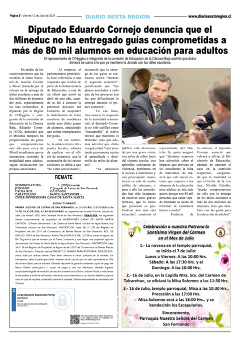 J JUZGADO : : 1 Juzgado de Letras de San Fernando o