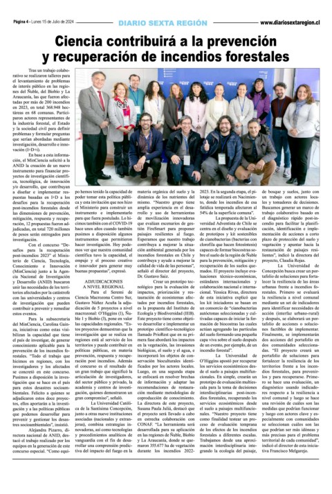 Página 4 - Lunes 15 de Julio de 2024 Ciencia contribuirá a la prevención y recuperación de incendios forestales