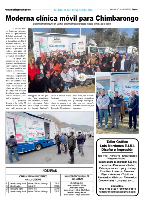 20 Carlos Guzman Baigorria Chillán N° 595-A 722373066 de lunes a viernes de 9: a 14:00 y de 15:00 a 17:00 horas JULIO.- L. Aliaga
