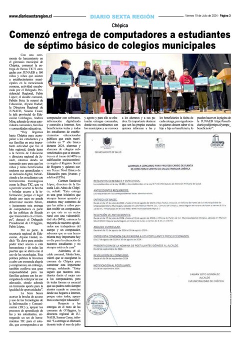 Viernes 19 de Julio de 2024 - Página 3 Chépica Comenzó entrega de computadores a estudiantes de séptimo básico de colegios municipales 240717601-02-03-04-05