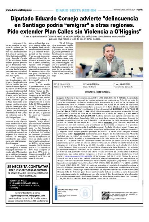 Pido extender Plan Calles sin Violencia a O’Higgins"