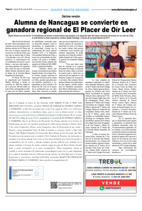 subasta conforme a las bases de remate, mediante cup n de pago del Banco Estado obtenido