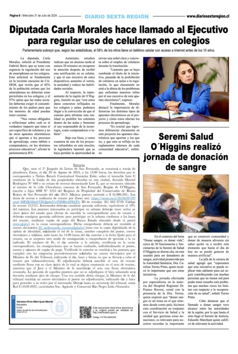 Que, ante el 2 Juzgado de Letras de San Fernando, se rematar a trav s de