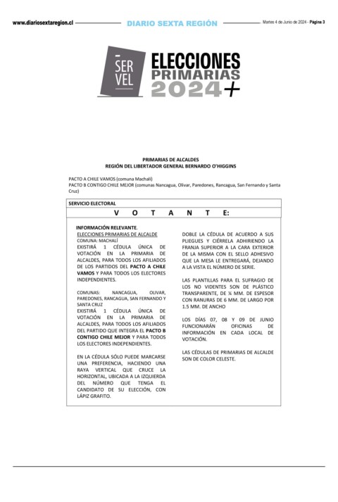 VOTACIÓN EN LA PRIMARIA DE LOS DÍAS 07, 08 Y 09 DE JUNIO