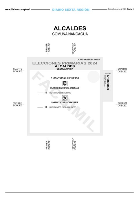 B. CONTIGO CHILE MEJOR CEDULA UNICA ALCALDES N°0000000