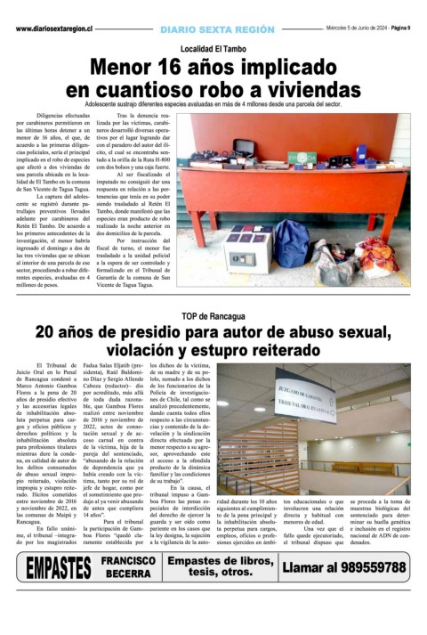 Adolescente sustrajo diferentes especies avaluadas en más de 4 millones desde una parcela del sector.