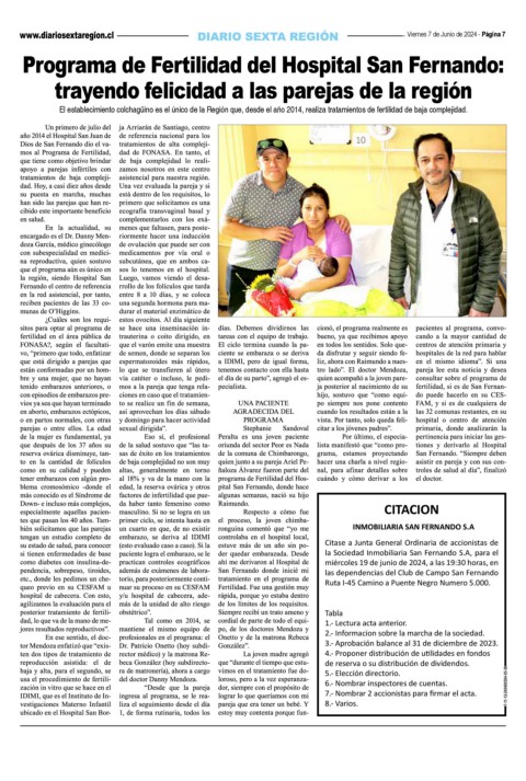 la Sociedad Inmobiliaria San Fernando S.A, para el