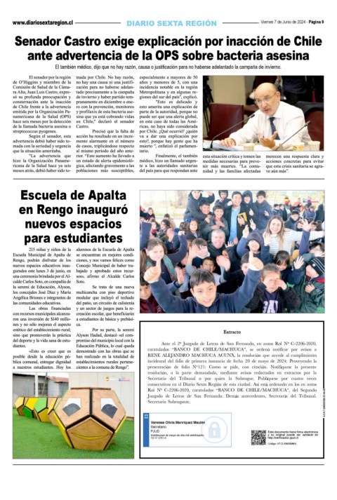 consecutivas en el Diario Sexta Regi n de esta ciudad. As est ordenado en los en autos