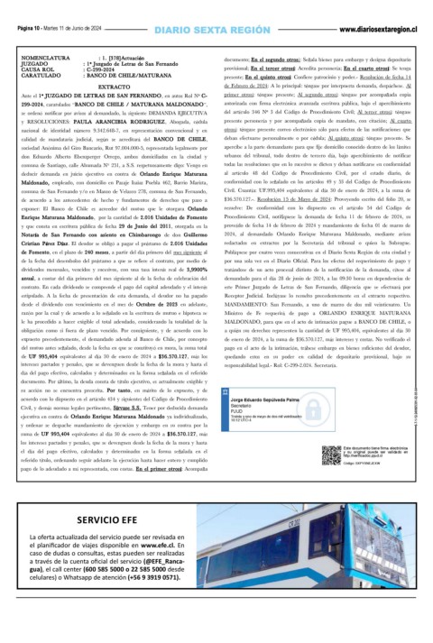 Secretario Publ quese por cuatro veces consecutivas en el Diario Sexta Regi n de esta ciudad y