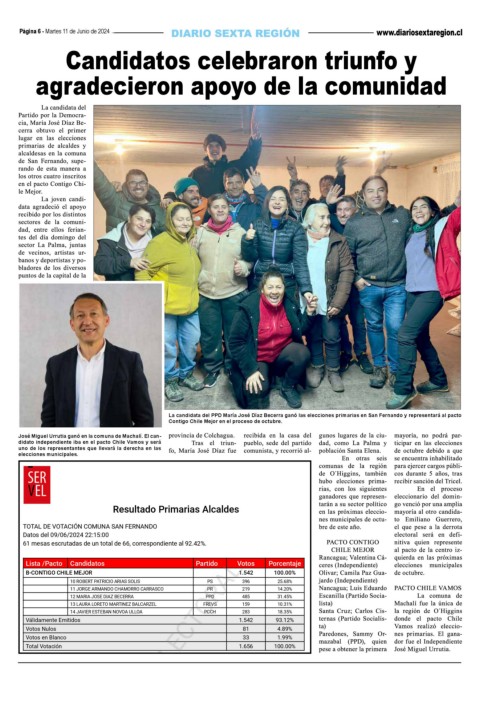 TOTAL DE VOTACIÓN COMUNA SAN FERNANDO SANTIAGO, 10/06/2024 11:04:12