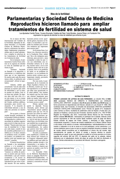 CANTILLANA, CRISTIAN”, rematará el día 25 de junio de 2024 a las 09:00 horas, en