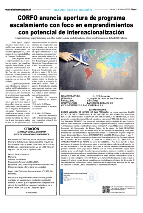 J JUZGADO : : 1 Juzgado de Letras de San Fernando