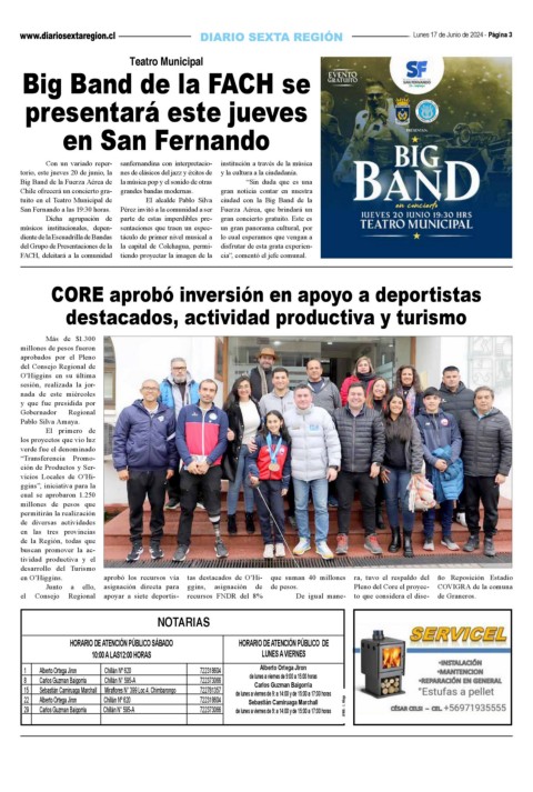 29 Carlos Guzman Baigorria Chillán N° 595-A 722373066 de lunes a viernes de 9: a 14:00 y de 15:00 a 17:00 horas JUNIO.- L. Aliaga
