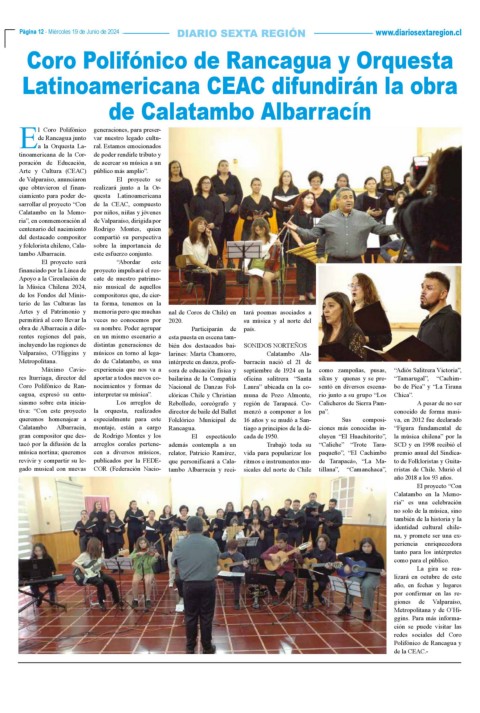 Página 12 - Miércoles 19 de Junio de 2024 www.diariosextaregion.cl