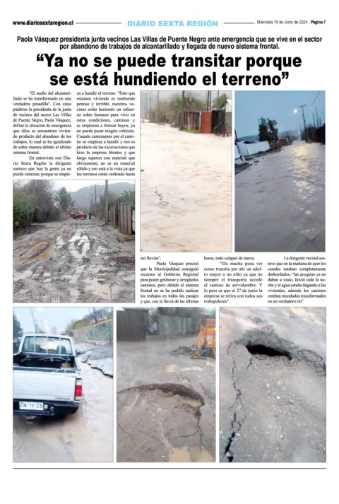 por abandono de trabajos de alcantarillado y llegada de nuevo sistema frontal.