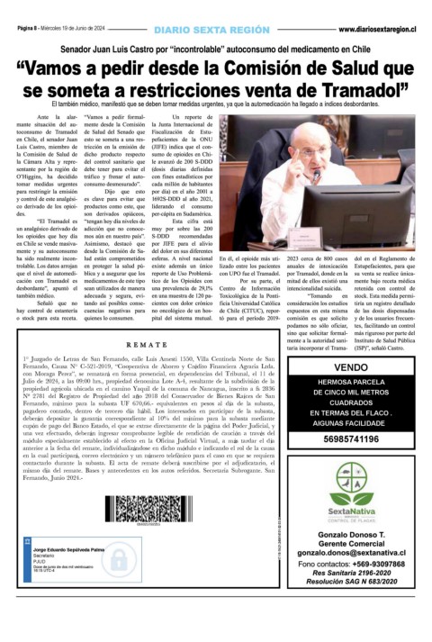 Senador Juan Luis Castro por “incontrolable” autoconsumo del medicamento en Chile