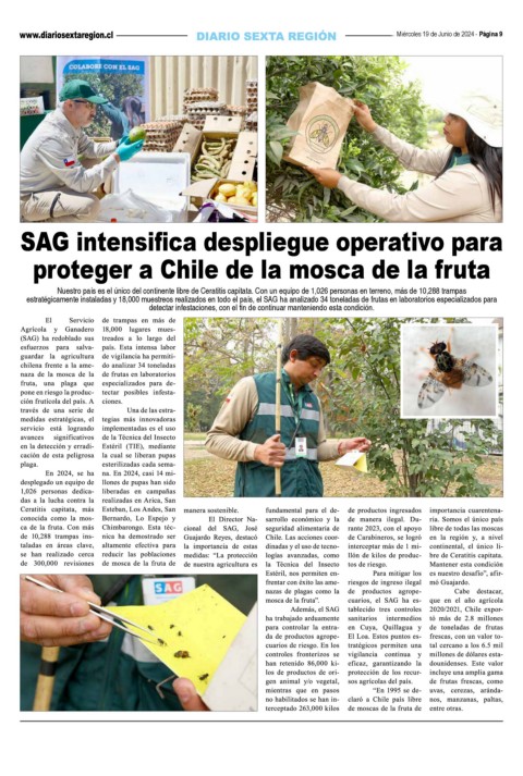 Nuestro país es el único del continente libre de Ceratitis capitata. Con un equipo de 1,026 personas en terreno, más de 10,288 trampas