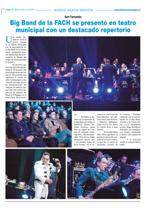 Página 12 - Martes 25 de Junio de 2024 www.diariosextaregion.cl Página 12 - Martes 25 de Junio de 2024 San Fernando Big Band de la FACH se presentó en teatro municipal con un destacado repertorio