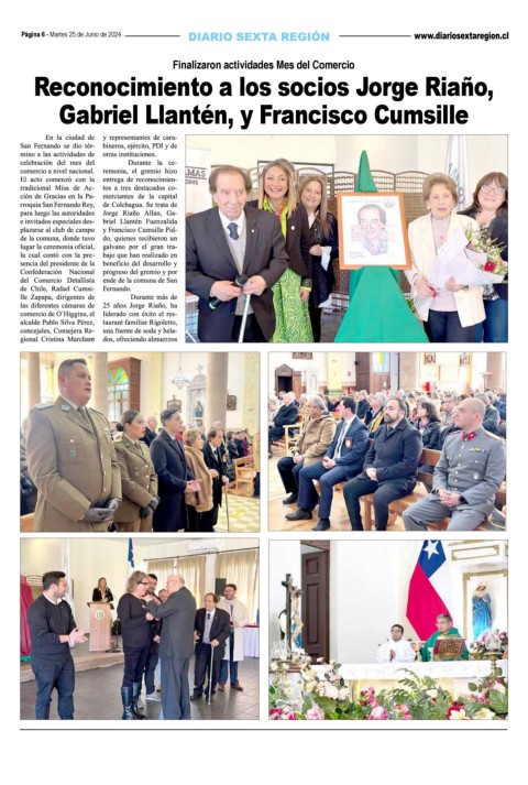 Página 6 - Martes 25 de Junio de 2024 Finalizaron actividades Mes del Comercio Reconocimiento a los socios Jorge Riaño, Gabriel Llantén, y Francisco Cumsille