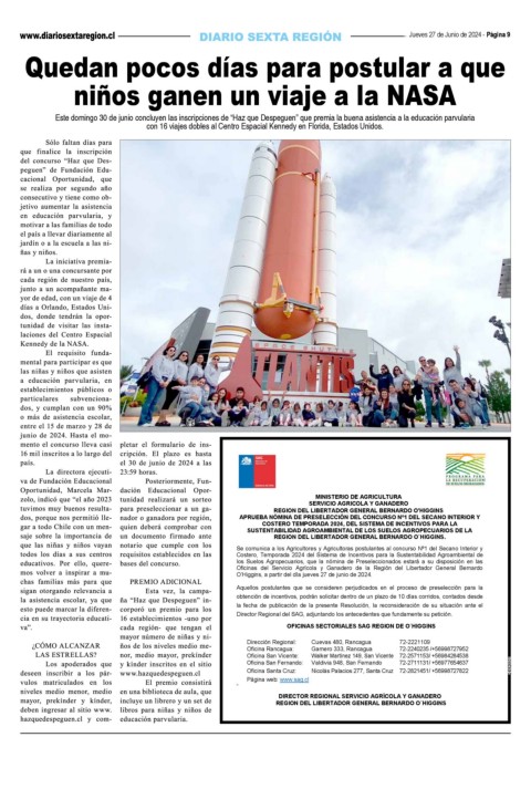 O’Higgins, a partir del día jueves 27 de junio de 2024.