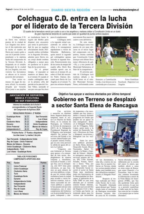 Informa los resultados de la fecha 6 a sector Santa Elena de Rancagua