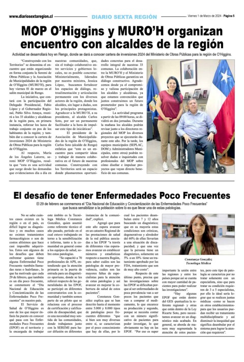Actividad se desarrollará hoy en Rengo, donde se dará a conocer cartera de inversiones 2024 del Ministerio de Obras Públicas para la región de O’Higgins.