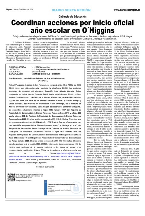 Ante el 1º Juzgado de Letras de San Fernando, se rematará, el día 11 de ABRIL de 2024, : 1. [378]Actuación