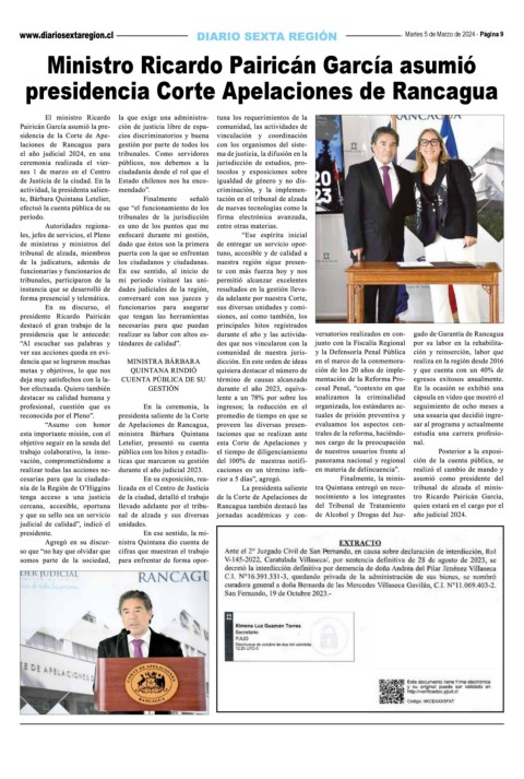 Martes 5 de Marzo de 2024 - Página 9 Ministro Ricardo Pairicán García asumió presidencia Corte Apelaciones de Rancagua